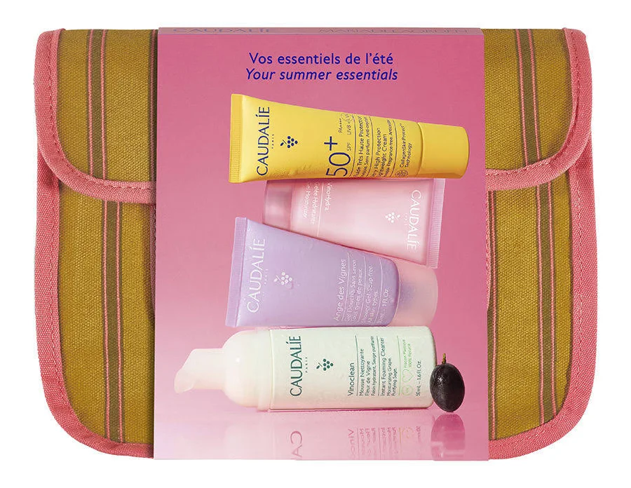 Caudalie Estate Trousse Fluido Viso Spf50+ 20ml + Gel Idratante 15ml + Gel Doccia 30ml + Mousse Detergente 50ml