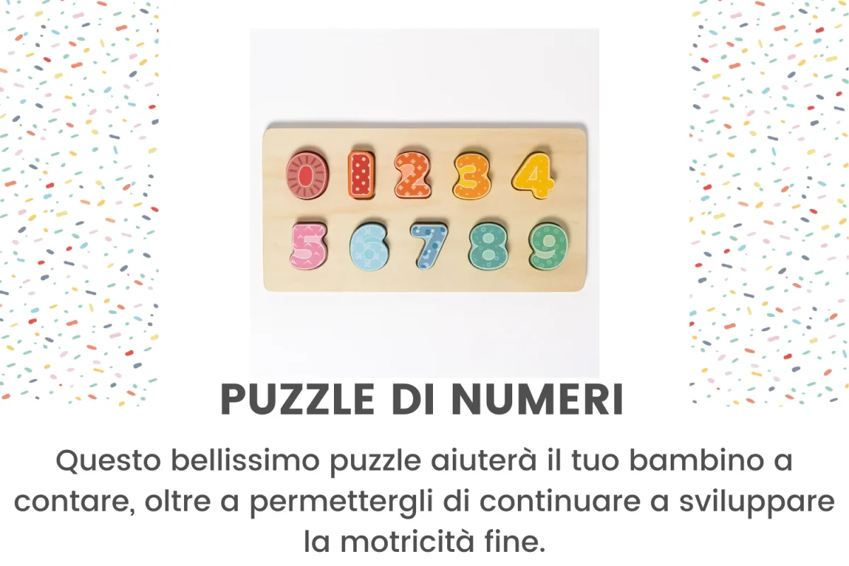 Puzzle di numeriÈ arrivato il momento di iniziare a imparare i numeri. Questo bellissimo puzzle aiuterà il tuo bambino a contare, oltre a permettergli di continuare a sviluppare la motricità fine.