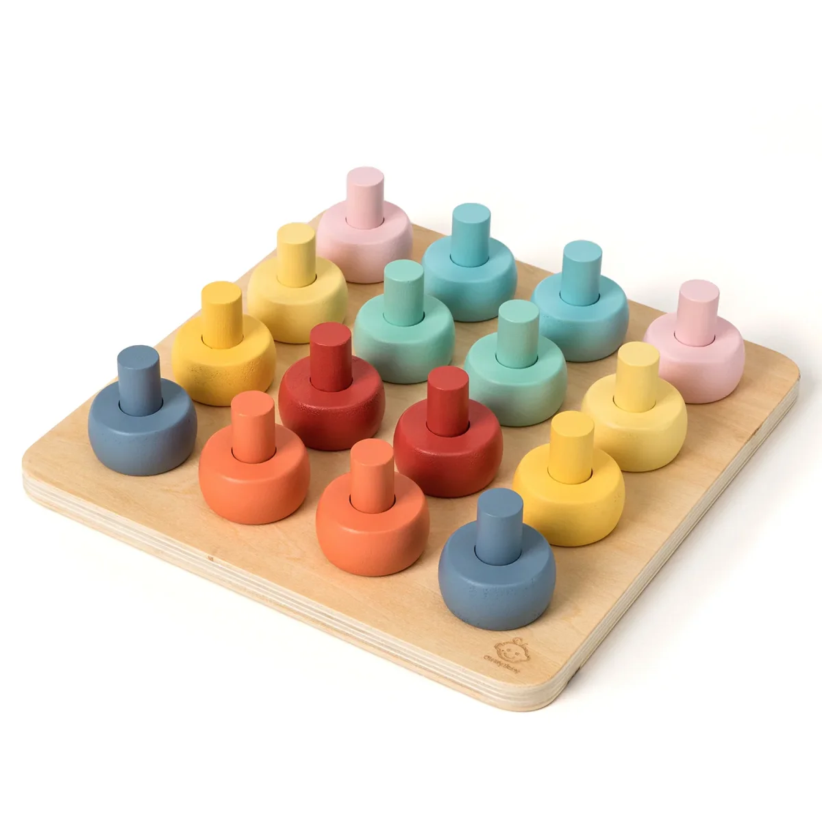 Pioli e anelliL’osservazione e la concentrazione sono fondamentali per completare correttamente questo gioco. Con pazienza e precisione, il tuo piccolo riuscirà a incastrare ogni anello colorato con il piolo verticale corrispondente. Oppure preferirà mischiare i colori? Questo gioco ha infinite possibilità.