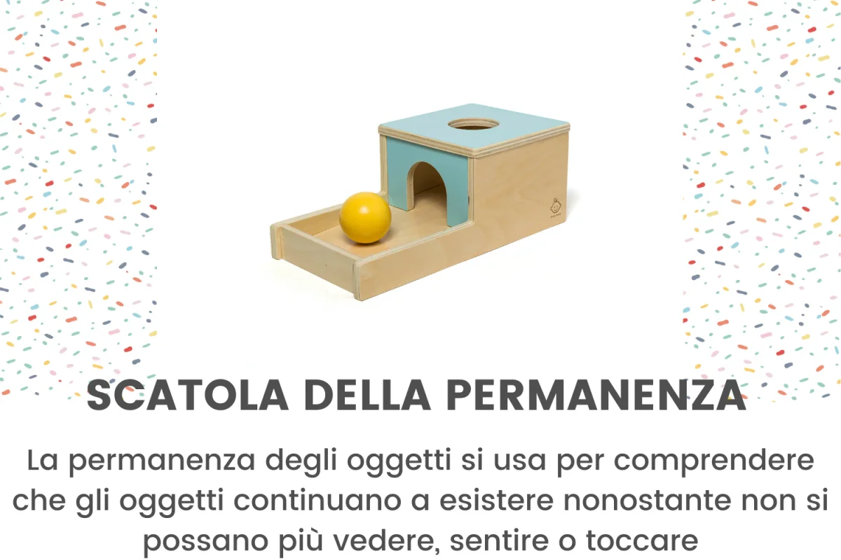 Scatola della permanenza degli oggettiLa permanenza degli oggetti si usa per descrivere la capacità del bambino di comprendere che gli oggetti continuano a esistere nonostante non si possano più vedere, sentire o toccare. Svolge un ruolo importante nella teoria dello sviluppo cognitivo.
