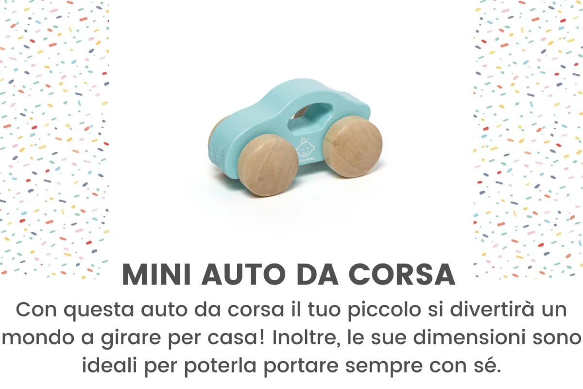 Broom-broom! Con questa auto da corsa il tuo piccolo si divertirà un mondo a girare per casa! Inoltre, le sue dimensioni sono ideali per poterla portare sempre con sé.